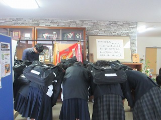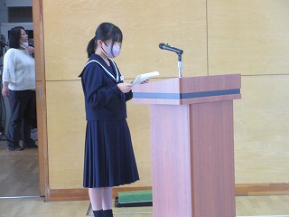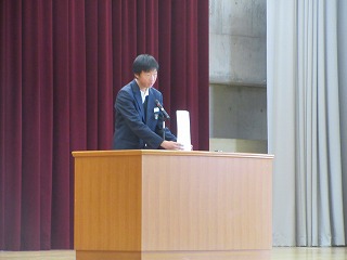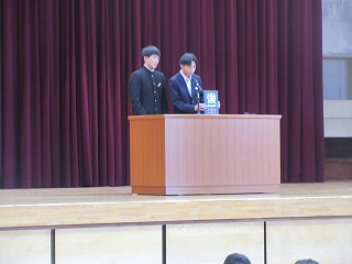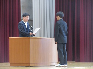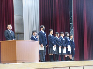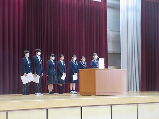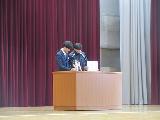 前期生徒会会長さんから10月に行われた双鳩際の優勝団に賞状が贈られました。