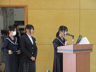 引き続き、後期生徒会の会長さんをはじめとする生徒会執行部のみなさんの任命です。