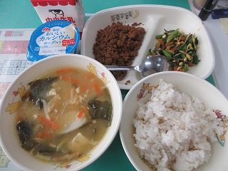 しかも、ご飯がこれまた児童生徒からの不動の人気をほこる「わかめご飯」です。食欲の秋にもってこいです!