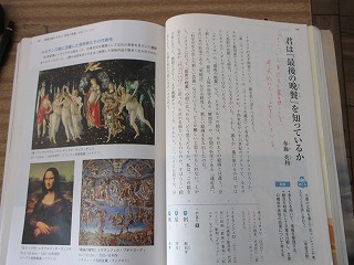 じつはこの単元は、前時に学習した布施英利さんの「最後の晩餐を知っているか」と、今回の藤原えりみさんの「最後の晩餐の新しさ」が連接されている単元なんです。