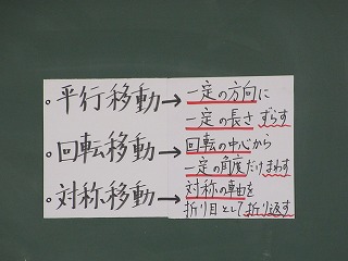 図形の移動には「平行移動」「回転移動」「対称移動」があることやそれぞれの作図の仕方を前時までに学習してきました。