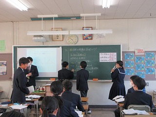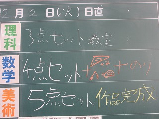 教室の背面黒板には今日明日の授業の持ち物連絡や予定等が書かれています。