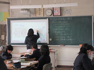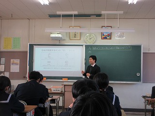 今日の社会の授業は、知多地方の社会科研究部の研究授業として、半田市を代表して勇太Tが研究授業を行いました。