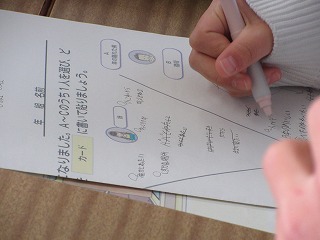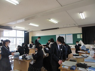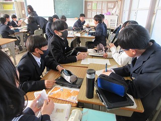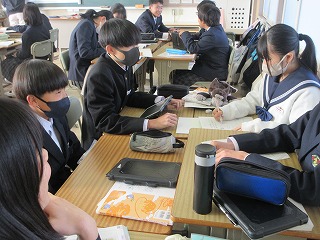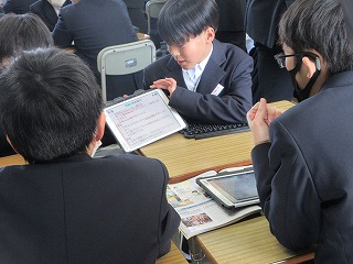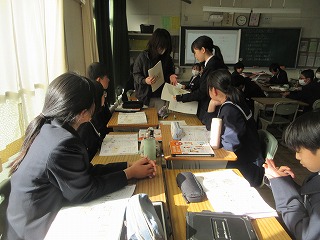 そして、またもとのグループに戻り、仕入れてきたクラスメートの意見などを交流させます。