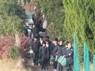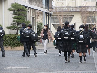 ちょうど出勤してくる先生たちと元気にあいさつをかわす半中生、本当に元気だな~。