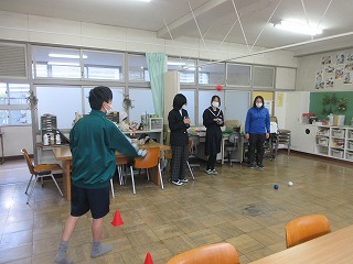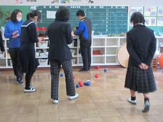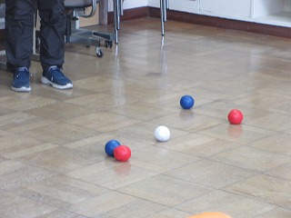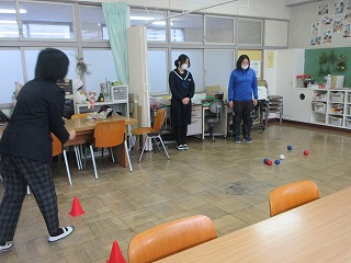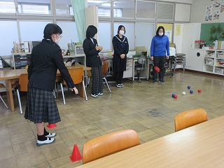 半田中学校校内教育支援センター「I〔アイ)ルーム」で、先週に引き続き「愛ちゃん体育、ボッチャ大会」です。
