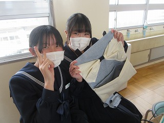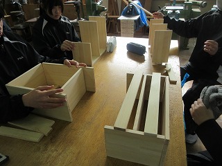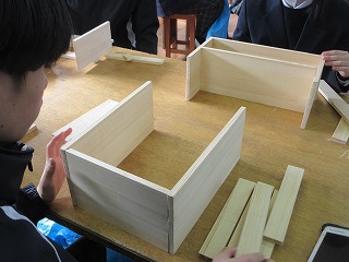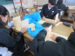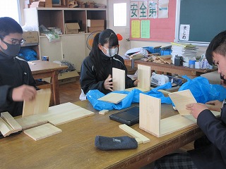 家庭科は「小物入れづくり」です。これまた、完成が近くなってきました。