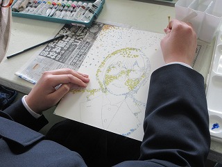 点描ですのでとにかく時間がかかります。筆でビューじゃないので、一点一点に集中します。