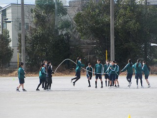 グラウンドでは1年生のガールズチームが元気に縄跳びです。