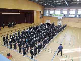 さて一方、3年生は体育館に集合し、第1回目の「卒業ソング」練習です。