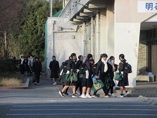 雲が多少あるものの時折日差しの指す朝となった1月最終登校日です。