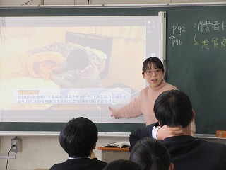 2年生の家庭科は「消費者トラブルとその対策」です。