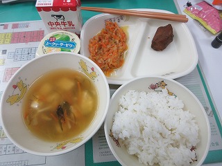 そうこうしているうちに給食です。学校給食週間、今日は地元愛知県の特産メニューです。