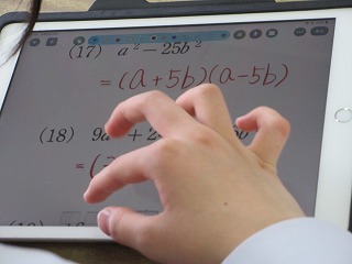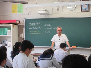 さて、今日は学校薬剤師の先生が見えて、この数学の授業中、教室の「二酸化炭素量」の測定にきてくれました。