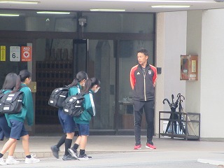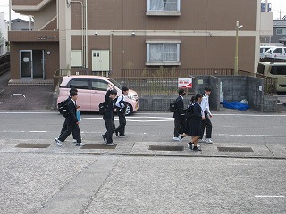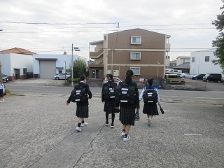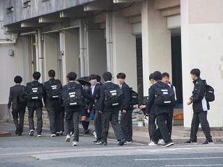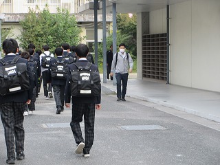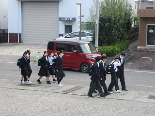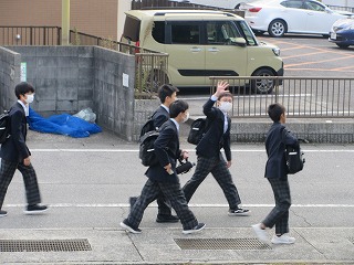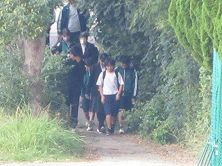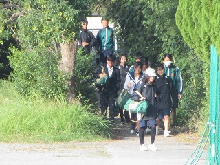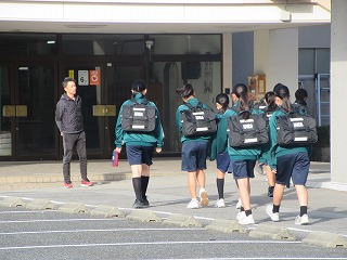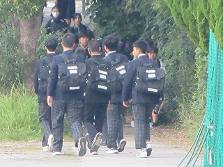 みんな、お弁当をもっての登校です。