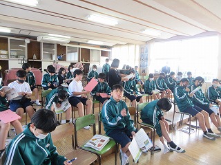 1年生の音楽は合唱「夏の思い出」です。