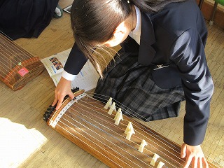 箏(そう)は準備が大切です。柱(じ)をたてるのも一苦労です。