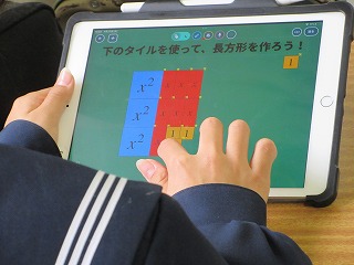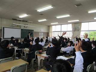 さて、今日は学校薬剤師の先生が見えて、この数学の授業中、教室の「二酸化炭素量」の測定にきてくれました。