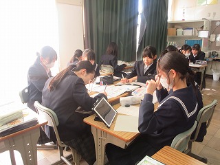 10組さんの家庭科は「お作法」ですが、その前に、今日は11月の初日です。月初めは給食用エプロンの洗濯、アイロンがけです。