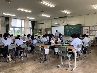 薬剤師さん「みんなが積極的に意見交換などするから、二酸化炭素量が心配だったけど、半田中学校は全然大丈夫です。換気が、放課中だけでなく、授業中もしっかりできている証拠ですよ。」