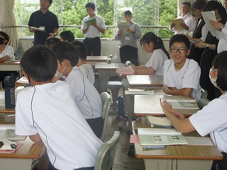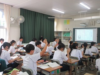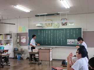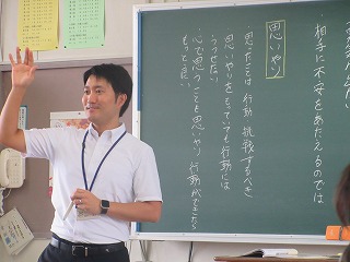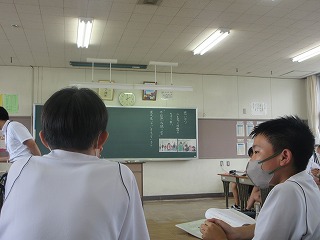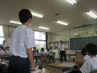 今日は本校にて「半田市道徳教育研究部」が行われ、市内書く小中学校から道徳担当の先生が集まり、半田市を代表して勇太Tが1年7組にて道徳の研究授業を行いました。