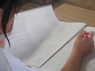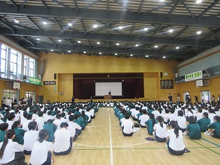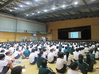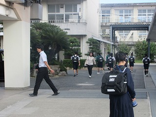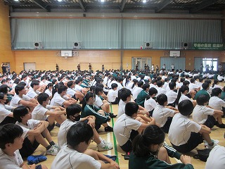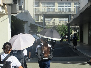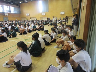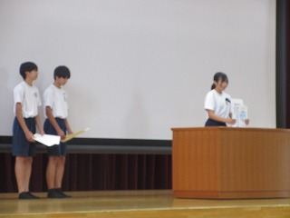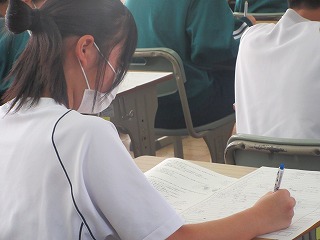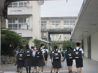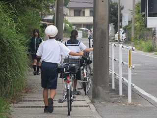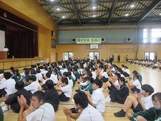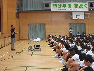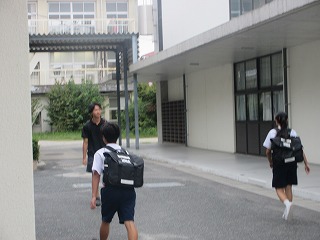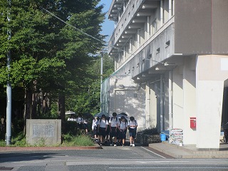 夏休み中に学校にある方から電話がありました。JR半田駅で大きな荷物をもって電車を降りて、長い階段(今工事中で特に長いんですよね)をどうしようかと思っていたら、半中生と思われる女子生徒が「手伝いましょうか?」と声をかけてくれて、大きくて重たい荷物を運ぶのを手伝ってくれたそうです。名前を聞こうとしたら、もういなくなってしまったのでお礼が言えなかったそうで、半中にお電話をしてくれた、ということがありました。