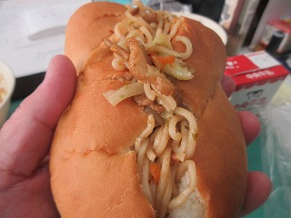 むりやりむぎゅってして、「焼きそばパン」にして食べたぜ~