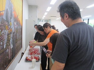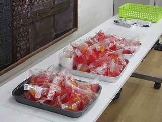 また、今日はPTA花壇の野菜園で育てていた「半中PTAスイカ」を使って、昨日「あい・ルーム」のみんなとPTAのみなさんで、「スイカゼリー」を作って、実行委員会後に委員さんに振る舞われました。