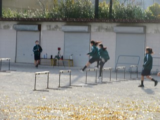運動場も体育館も、2年生の元気のええ声が聞こえてくる体育。体育はやっぱり、ええね。