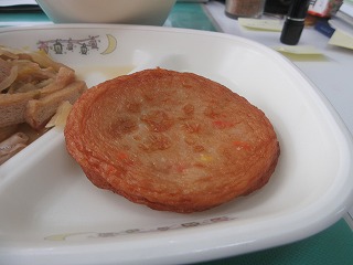 サイドメニューの「けんちん信田(しのだ)のネギ味噌かけ」です。「けんしん信田」は昭和50年代後半に成長期の小中学生にと給食用に開発された、