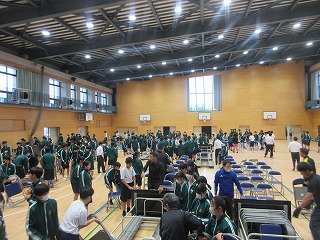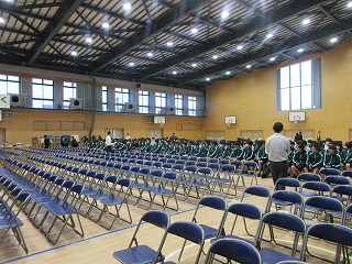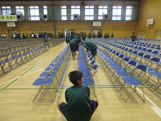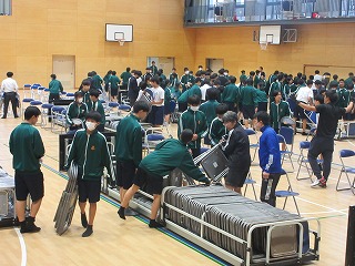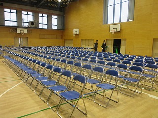 2年生のみなさんの手によって、1,000脚のイスがあっという間にならべられていきます。