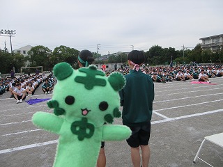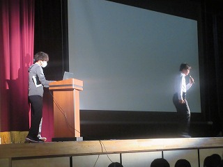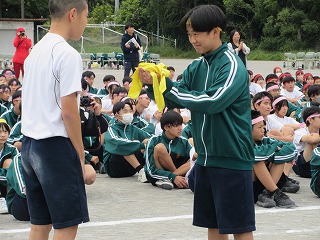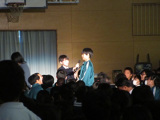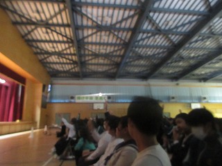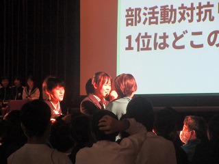 「女子運動部対抗3人4脚レース」「男子運動部活動対抗リレー」の順位を当てるクイズでは、予想して、その後、運動場からの生中継が流されるというテレビ局顔負けのクイズでした。楽しいクイズ大会でした。