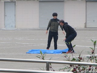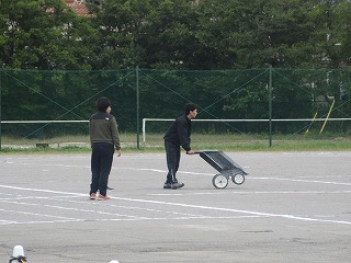 今朝、体育の先生たちは6時集合で、最終点検、ライン引きをしてくれました。