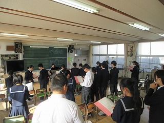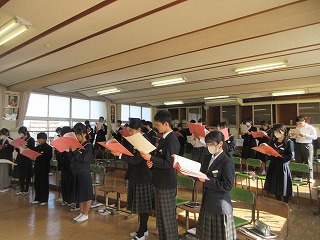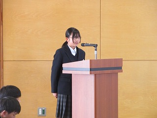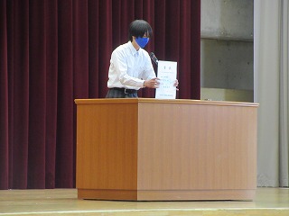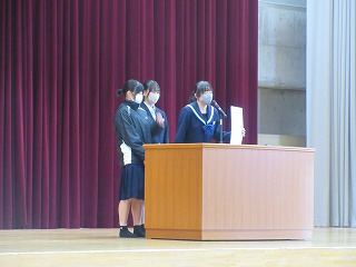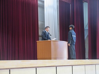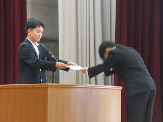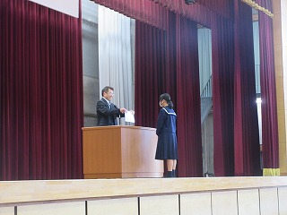 前期生徒会会長さんから10月に行われた双鳩際の優勝団に賞状が贈られました。