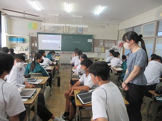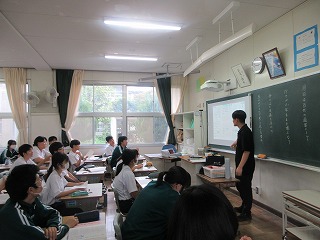 9月の終わり頃から3年5組に教育実習生が来ています。その実習も明日で終了です。